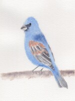 I do not often work on square paper surfaces, but the direction of this hummingbird's wings and the flower cluster it was drinking from led to a much better composition on this shape. I had fun watching and painting this bird.